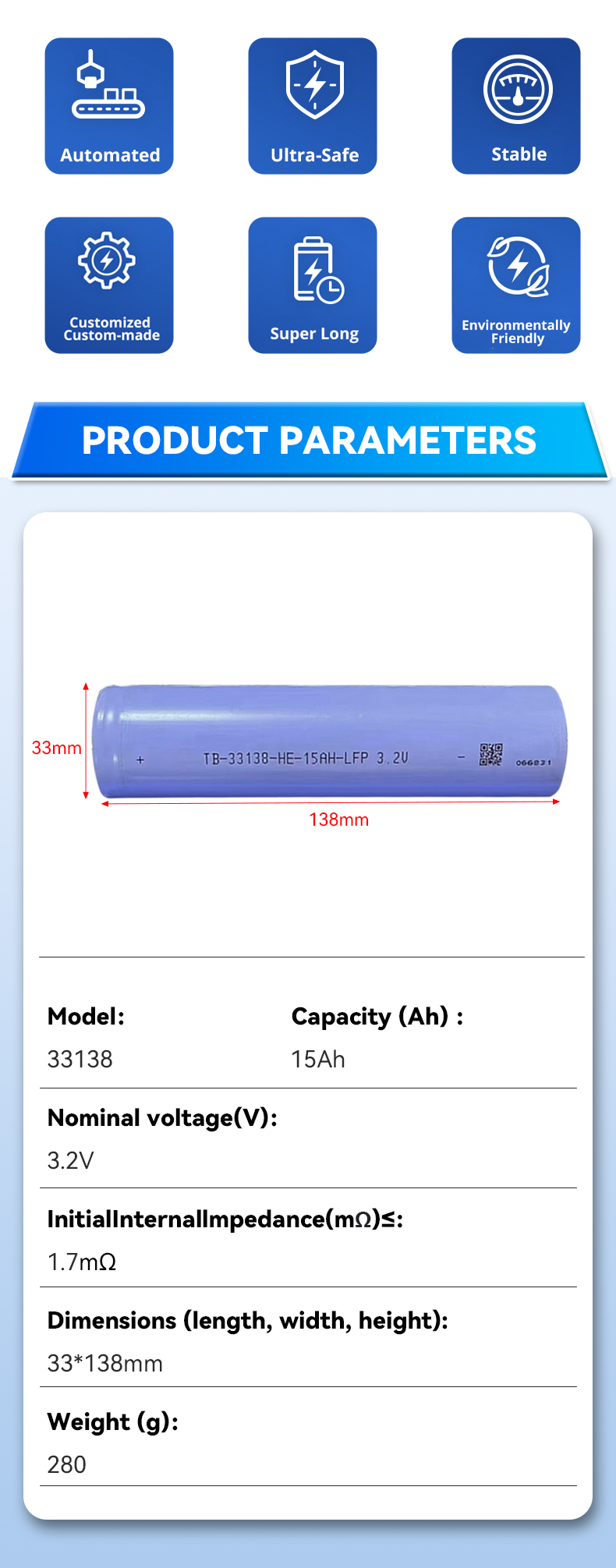 • 33138 3.2v 14.5ah Cylindrical Lithium Ion Batteries