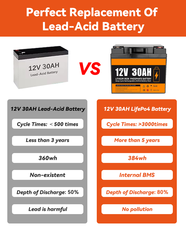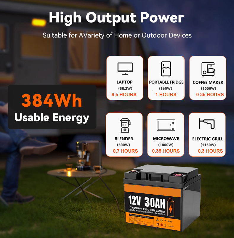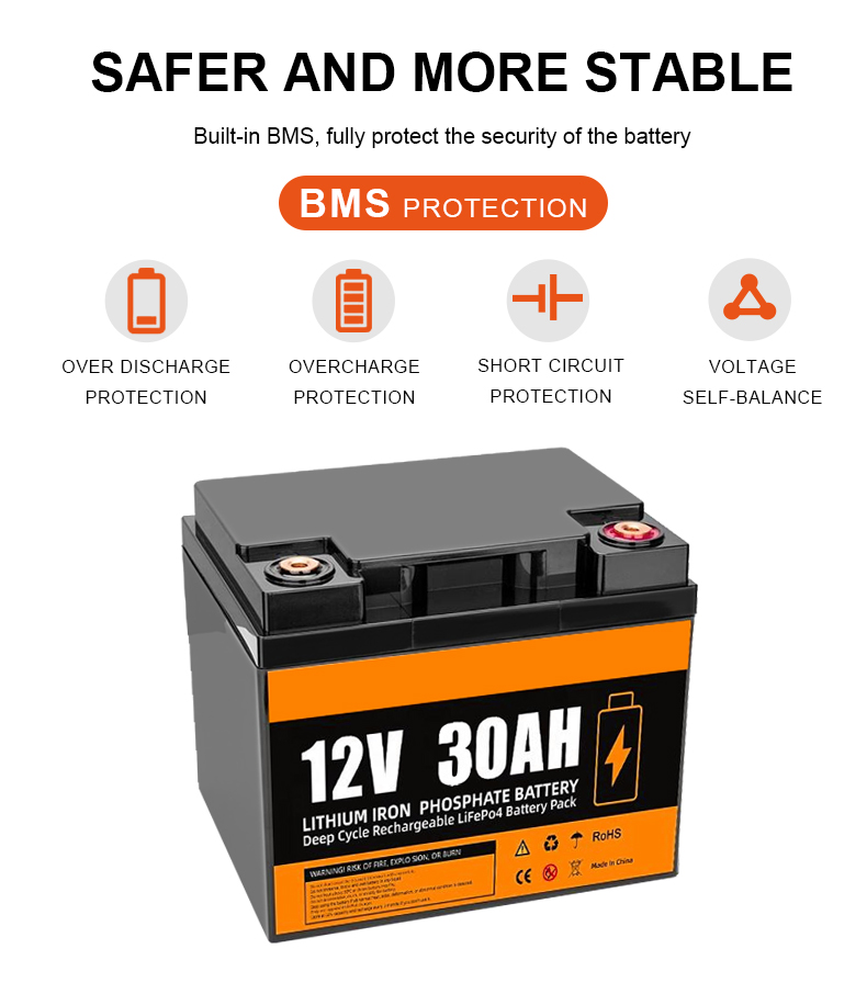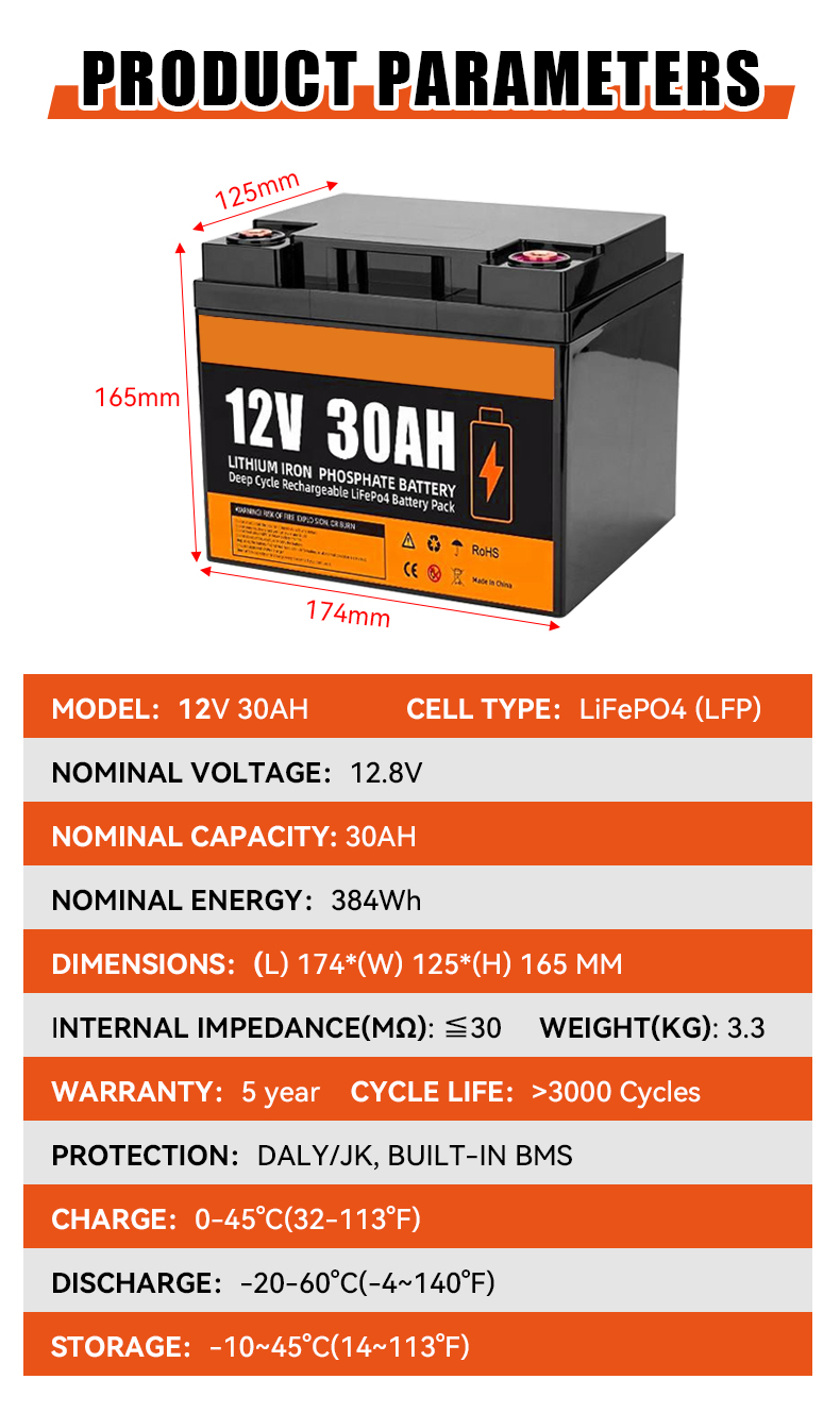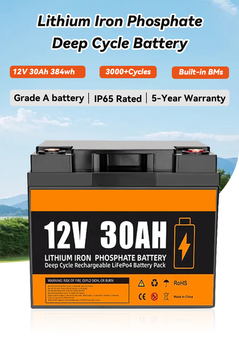 12V 30Ah LiFePO4 Lithium Iron Phosphate Battery Pack Portable Solar Home Energy Storage BMS for Outdoor Portable Power Supply