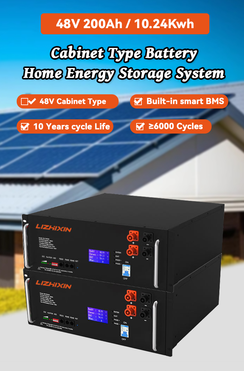 48V 200Ah 9.6kWh Rack-Mounted Lithium Battery Solar Off-Grid System Split Type with CAN Communication Port 300ah Capacity
