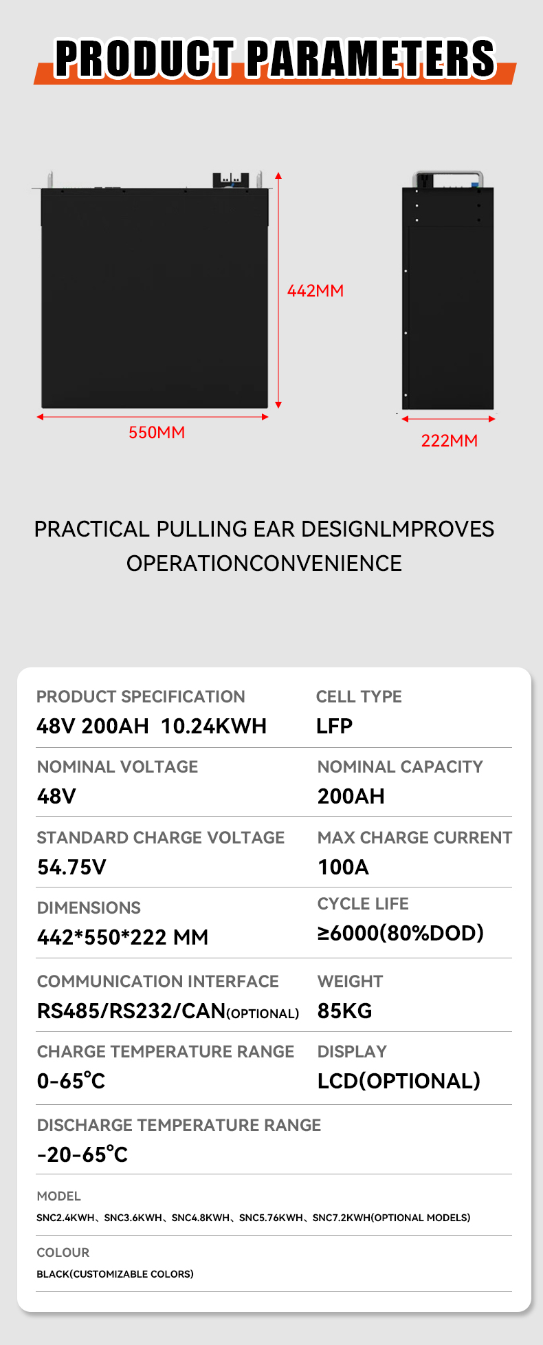 Rack mounted battery 48v 200ah